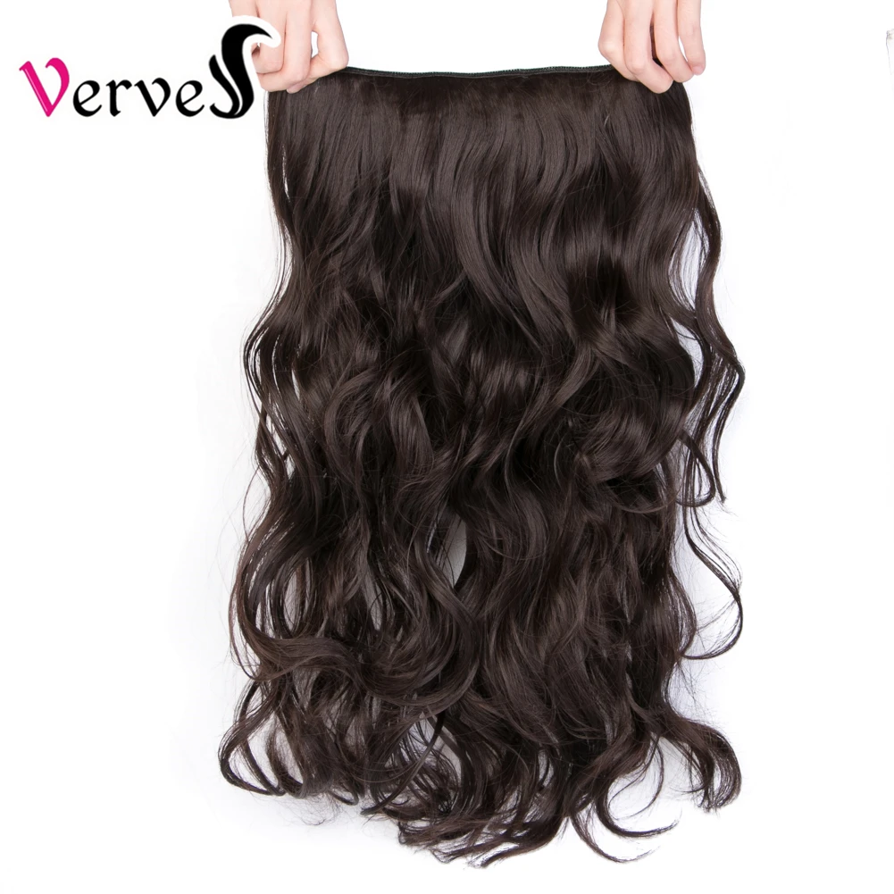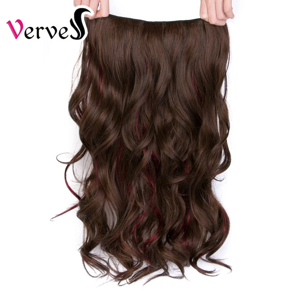Qp hairClip-In One Piece Synthetic Hair Extensions With 5 Clips 24 inch Long straight Hair Pure Color Brown Black