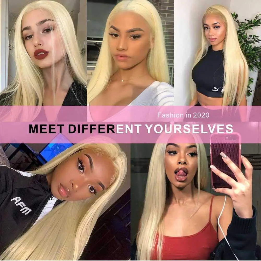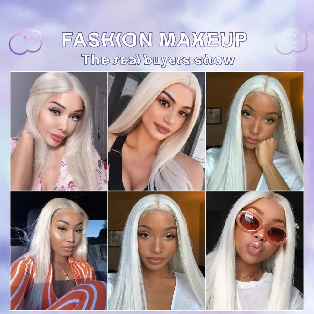 Qp hairMONIXI Synthetic Long Straight White Wig 60 613 Wigs for Women Middle Part Cosplay Pink Blonde Wig Fake Hair