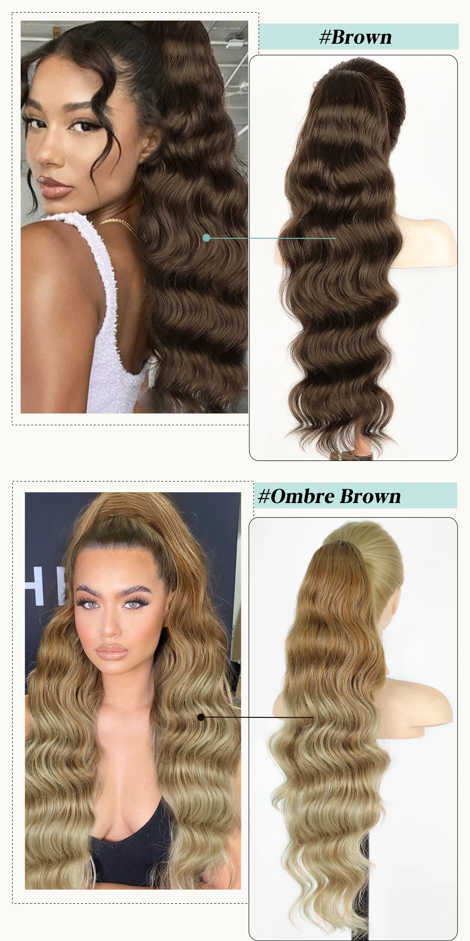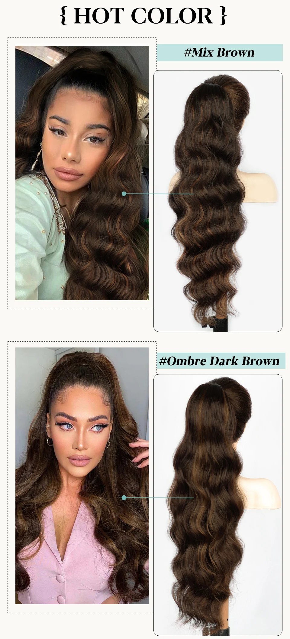 Qp hairMONIXI Synthetic Mix Brown Ponytail Extensions Long Body Wavy Drawstring Ponytail for Women Blonde Fake Hair Natural Looking