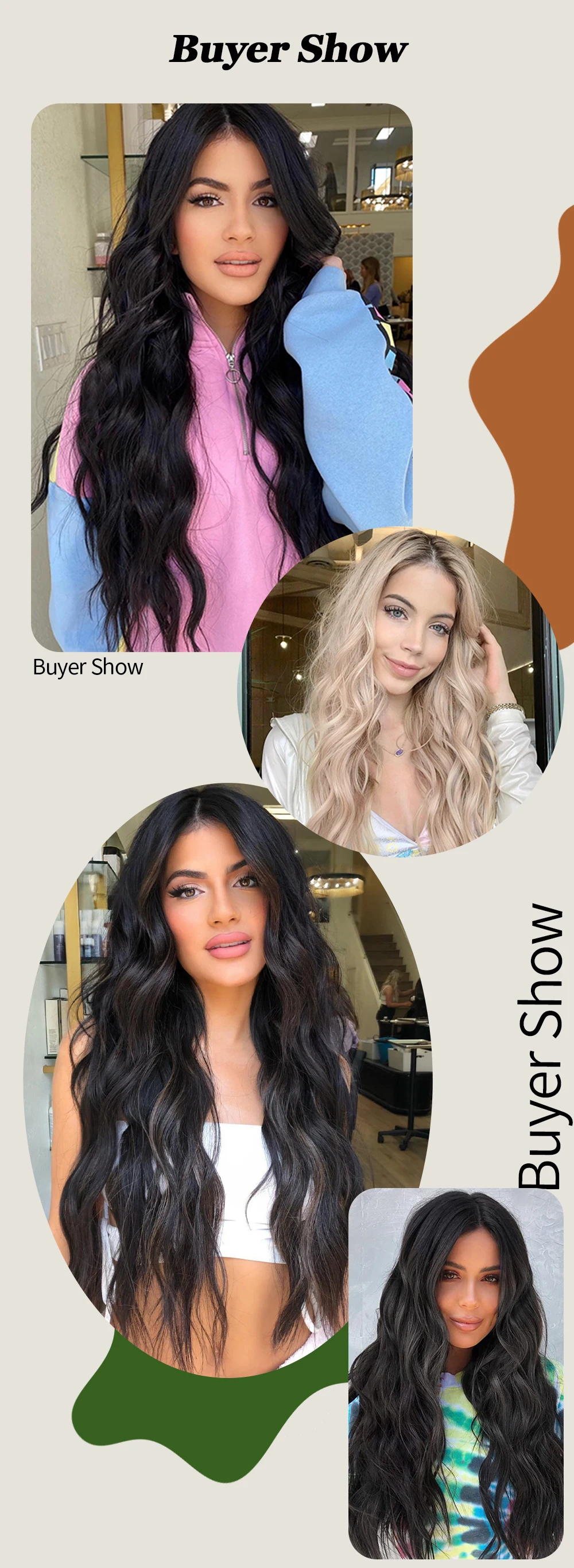 Qp hairSynthetic 4pcs Clip In Hair Extensions Long Wavy Extension Black and Mixed Color Hairpieces For Women Dairy Heat Resistence