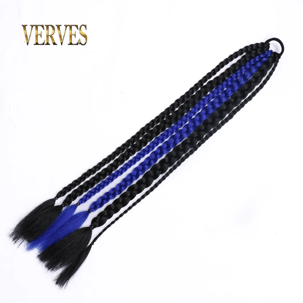 Qp hairSynthetic Chignon Tail With Rubber Band Ring Braid Hair Ponytail Extensions 22'' Mix Color Blue Grey Pink Rainbow