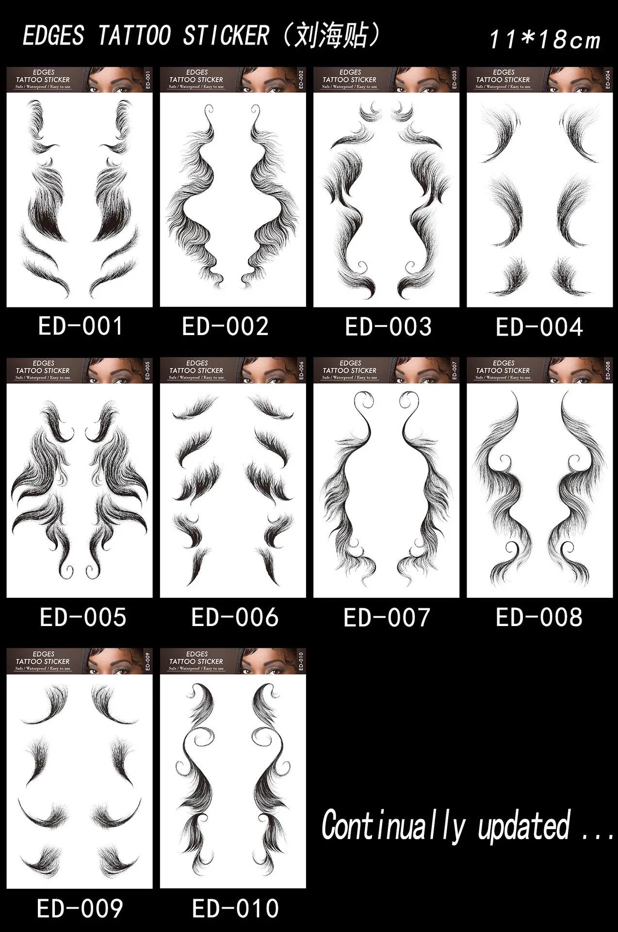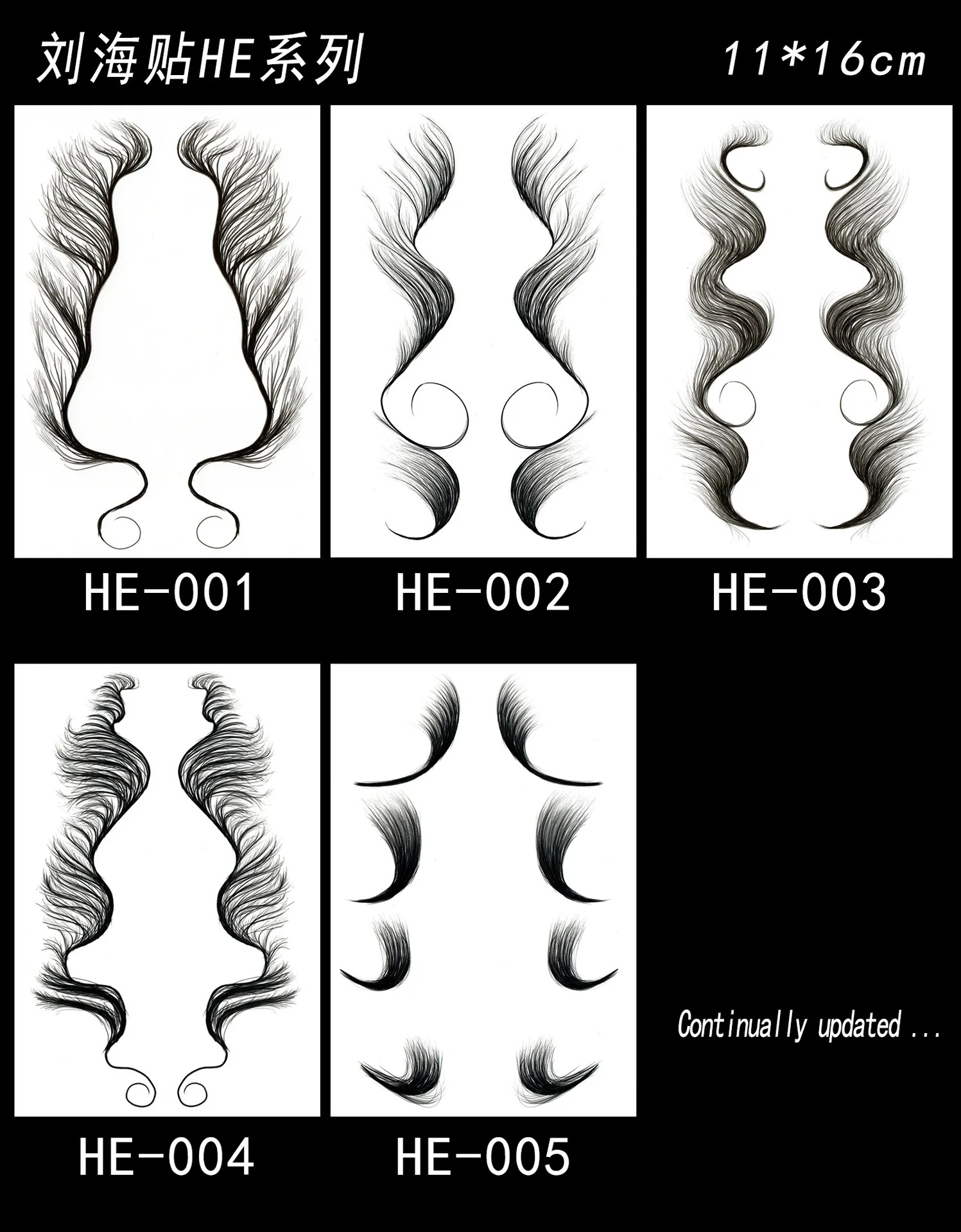 5 styles of baby hair styling, you can see individually defined hair strands in each design. You can also cut the product into a shape you like to create a beautiful visual effect.